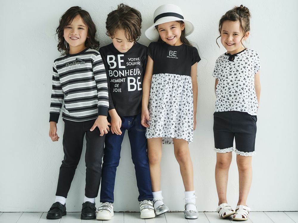 1971年誕生的「BeBe」秉持「讓孩子樂於享受大人時尚」的理念,推出了在當時兒童服飾中未曾出現的單色設計、富有大人風格的剪裁以及講究的材質,為孩子們帶來一流的休閒服飾。儘管是童裝,但也讓大人心動不已,商品系列豐富多樣,在日本備受歡迎。