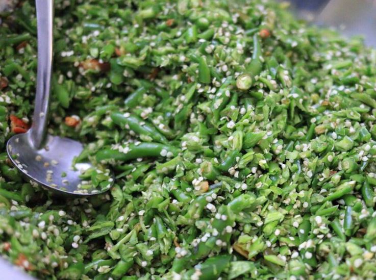 再淋上店家用大火熬煮的湯頭以及滿滿的青辣椒與酸辣醬汁!湯汁鮮甜的滋味在嘴裡久久無法消失,若不敢吃辣的妞妞們可以用湯淋掉上頭的辣椒再細細品嚐豬脊骨的香氣。