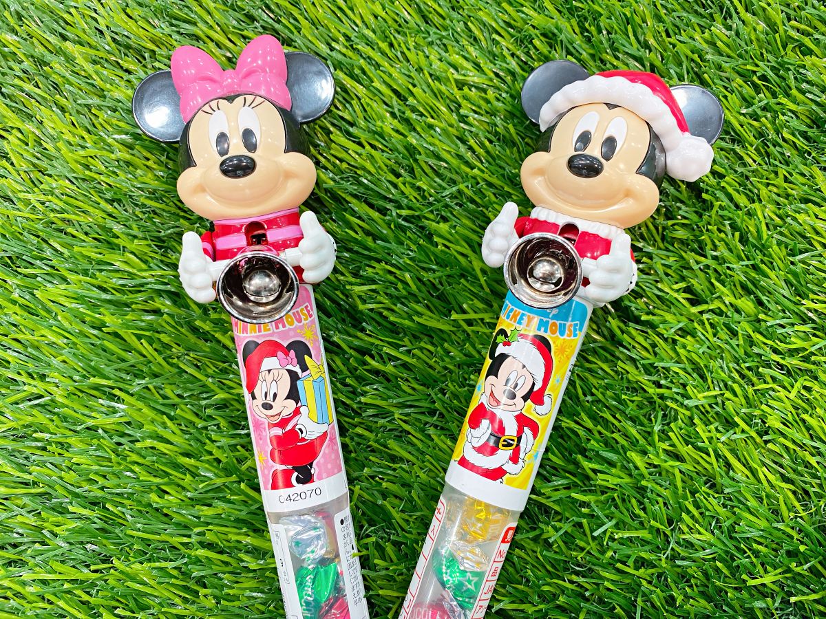 米奇米妮也穿上聖誕裝陪大家歡度佳節啦~這款聖誕風零食玩具內有數顆巧克力,外面的米奇米妮為可活動式,按下開關即可讓他們敲動鈴鐺發出「鈴鈴聲」,迪士尼粉絲必收藏!