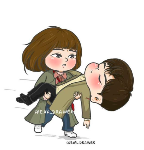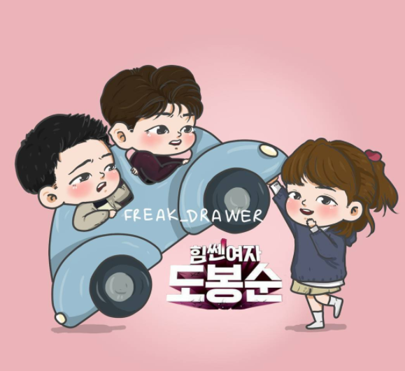 可以感受出來這位大概是《大力女子都奉順》的粉絲,大力女不成比例的份量超多,而freak drawer的作品也被播出大力女的JTBC電視台粉絲專頁分享。大力女奉順因為太多破壞場面了,所以有很多靈感可以畫啊~