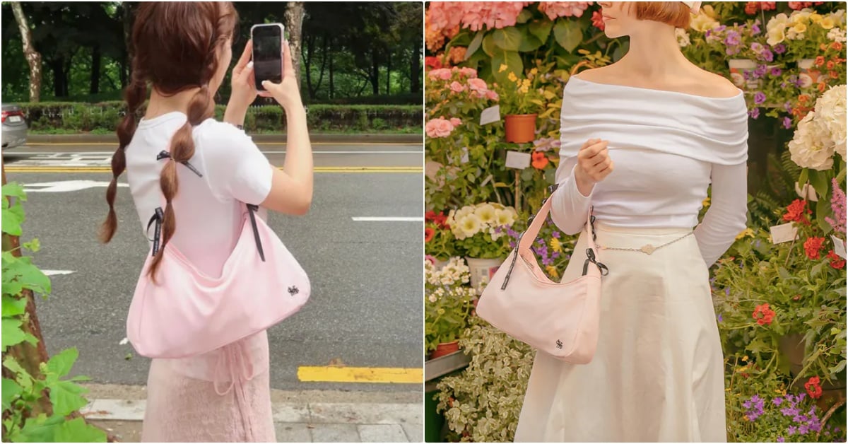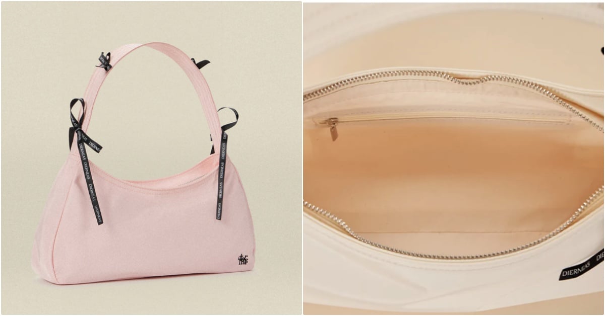 有點甜又不過甜,韓國設計師品牌DIERNEAS出品的蝴蝶結腋下包,以唯美的櫻花粉打造而成,同時搭配輕盈尼龍材質注入休閒率性氛圍,蝴蝶結也是以黑色的「品牌LOGO緞帶」點綴在背帶上,充滿法式簡潔感。
