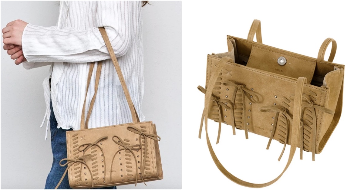 不可能蝴蝶結也能自帶「美國西部風情」吧?韓國設計師品牌STAND OIL的這咖「Oblong Bag Lace Up」,把原本深受OL韓妞喜愛的通勤必備包款變狂野了(笑)!硬挺的包型加入觸感柔軟的混麂皮材質,沙漠棕配色搭配綁帶式蝴蝶結,背上秒幫整體造型增加吸睛亮點~