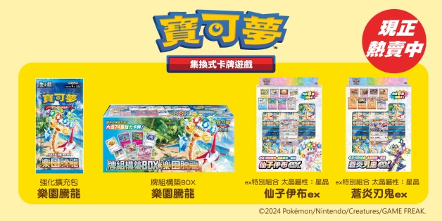 全聯同步開賣寶可夢卡牌遊戲《強化擴充包 樂園騰龍》,10月25日則上市《超電突圍》的擴充包與收藏家組合,每包包含5張卡牌,隨機封入特別稀有卡,玩家有機會獲得限定版本的強力卡牌!