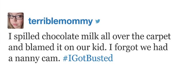 網友terriblemommy:「我把巧克力牛奶不小心灑滿整個地毯,可是我把這件事怪在孩子頭上。我忘記我們有保母監視器了...」