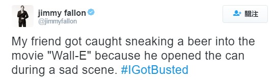 相信有在看吉米法倫(Jimmy Fallon)《The Tonight Show》的人知道他有個很有趣的徵文活動《HashTag》,吉米法倫每天會給一個主題,有興趣的網友們就可以以自身經驗投稿給節目。而其中一次的主題就是「#IGotBusted」。