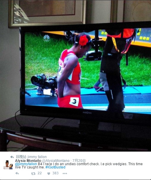 網友Alysia Montaño:「比賽前我喬了一下我的內褲讓自己舒服一點,但剛好就被電視轉播拍到了...」