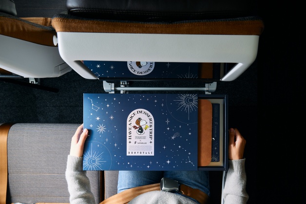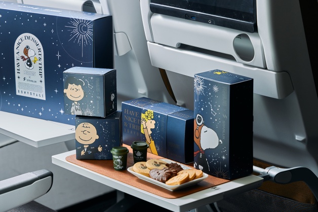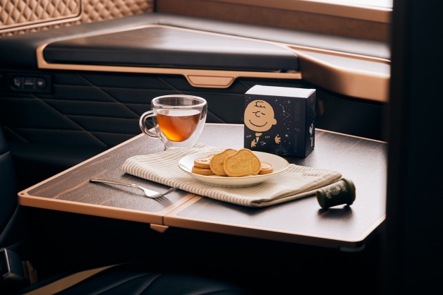 「SNOOPY×STARLUX 浩瀚遨遊午茶享受禮盒」由星宇航空、SNOOPY 史努比、SUNFRIEND MOUTH三方聯手企劃製作,禮盒內含有3款餅乾、1款迷你錫蘭紅茶茶粉、1個皮革壓印史努比餐墊、1個專屬送禮提袋,就連外包裝也不馬虎,還找來查理布朗、莎莉布朗和露西!