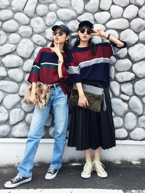 雙子穿搭無論是在哪種季節都依然很受歡迎!不同粗細的線條、色塊組成的上衣,雖然是相通款式,不過顏色與搭配的下身不同,又可以展現不同的風格,女孩們也可以跟姊妹一起嘗試看看喔!