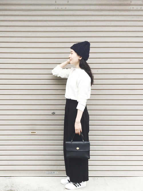 白上衣與寬褲給人比較正式的感覺,但是搭上毛帽還有球鞋,是不是平衡了正式感,加入了些輕鬆的街頭元素呢?
