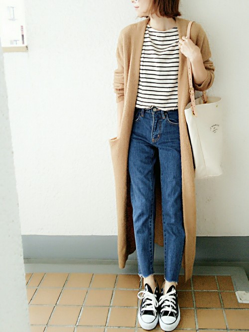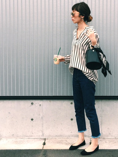 想不到要穿什麼又不想亂搭出錯,那麼襯衫+牛仔褲可說是經典不敗的搭配了!細的直條紋可以讓身形更加顯瘦,俐落的造型連搭平底鞋都可以很有氣勢~