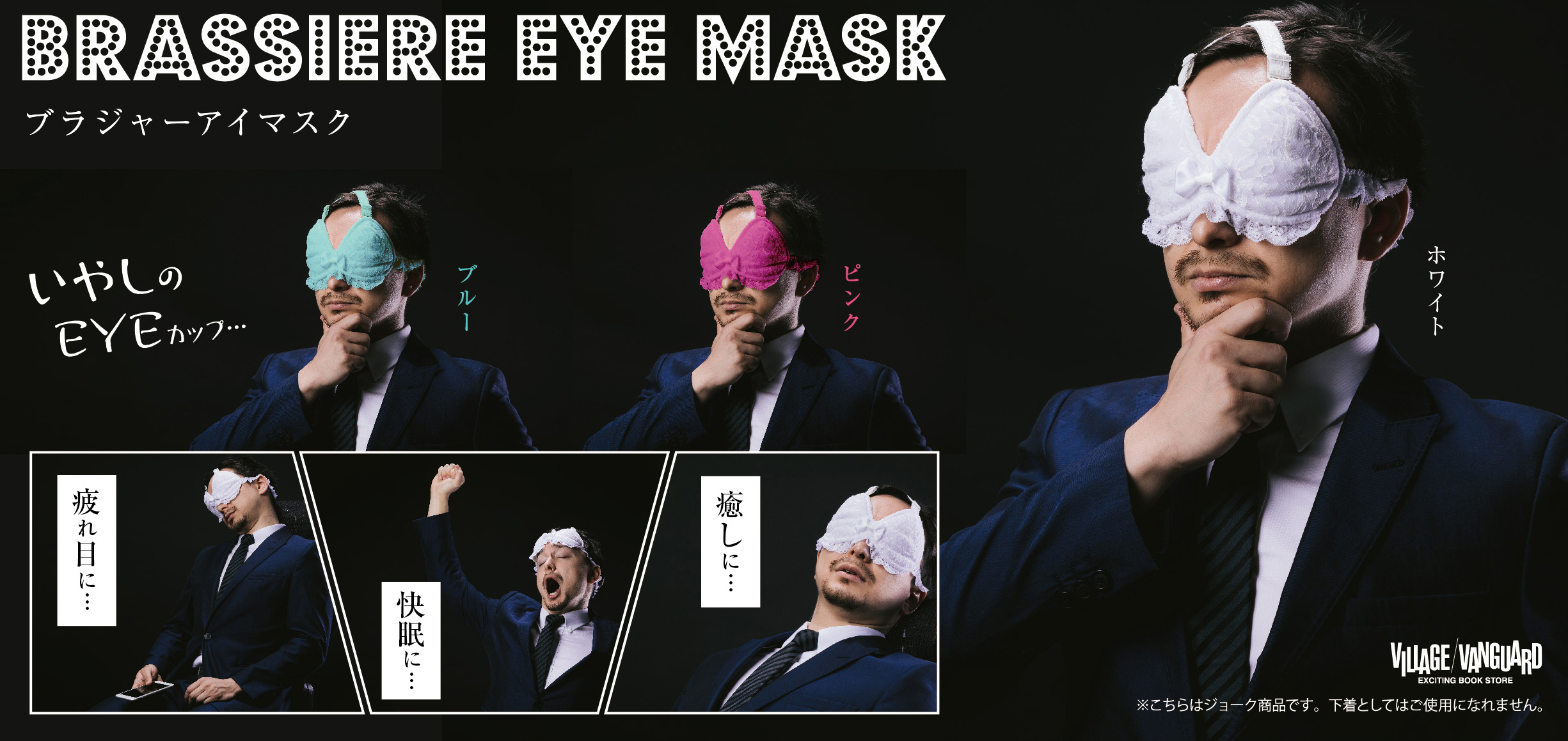 這系列「妄想成真」的各種雜貨,原本還真都是VILLAGE VANGUARD店員們的「妄想」點子。他們把各種天馬行空的想法提出來,在評估各種可行性之後,就有機會商品化,真的量產販售。第一彈登場的是非常有梗之「內衣眼罩」,挑戰使用者的恥度。