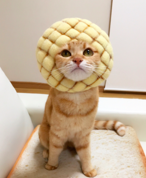 不管是吐司麵包、紅豆麵包、菠蘿麵包、還是波緹獅甜甜圈的麵包頭套,喵星人都是一臉「眼神死」的模樣,實在是太療癒了啦!XDDD