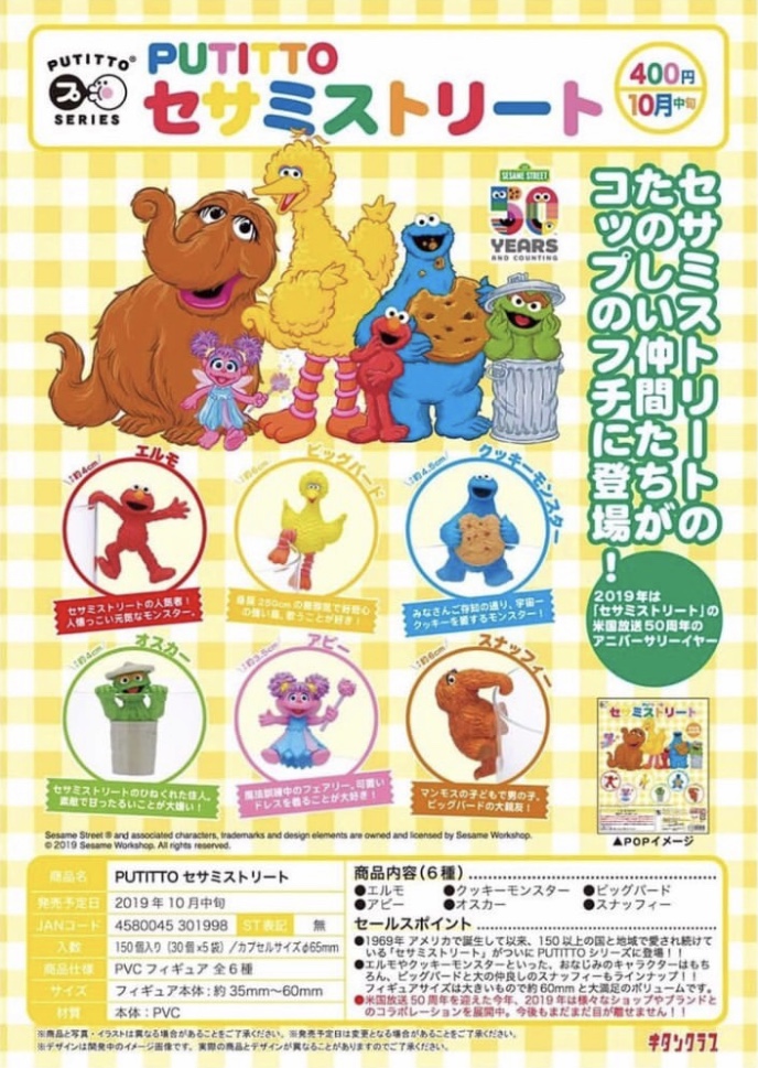奇譚(KITAN)旗下PUTITTO終於在這個月推出新系列的杯緣子了,為了歡慶芝麻街開播50周年,這次一共有六款從小陪我們長大的可愛角色們!!哇~~~好可愛喔♡♡