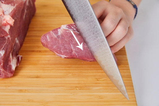 家傳三代的豬肉舖達人張采婕也提出,各種肉類都具有固定的肌理紋路,應先看它們纖維走的方向,順著這個紋路直切或是橫切, 會讓肉質在料理時具有不同的變化,像是長時間烹調有油脂的部位,肉塊不要切太小,容易散開。因此建議依照不同的料理選擇適合的切法喔!