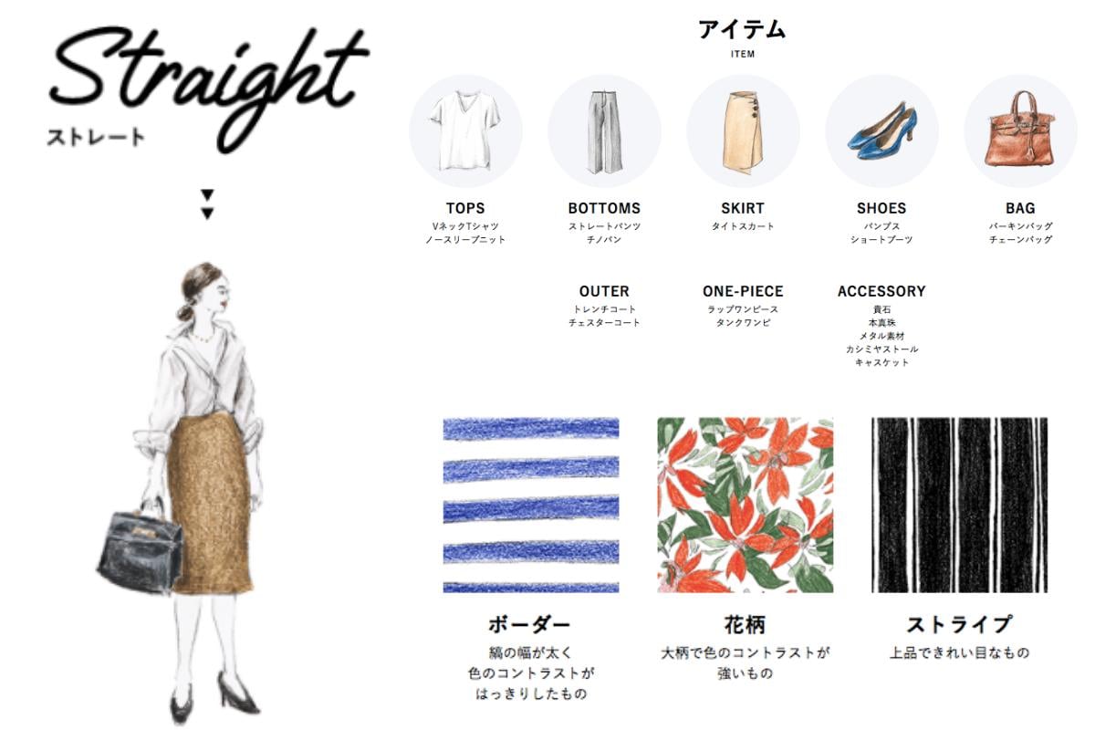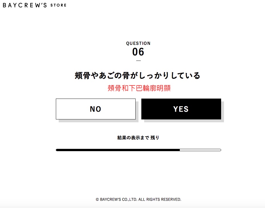日本「BAYCREW'S STORE」(ベイクルーズ ストア)近期開設了一個網站,不僅可以購物,還能「骨骼診斷」測驗,透過幾道問題將女孩的骨骼身形分為三大類,包括「Straight」、「Wave」和「Natural」。不僅如此,還會列出這身材的名人代表,以及適合的穿搭單品有哪些,像是顏色、花紋圖樣和服飾材質等都會一一說明。