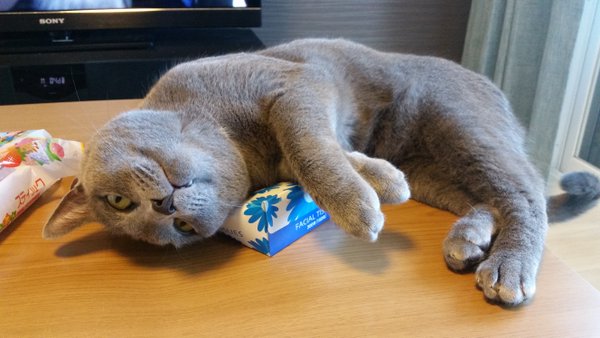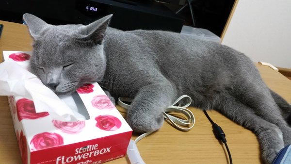 最近在Twitter網友瘋傳一張照片,原來是Twitter用戶kokesukepapa家養的小灰貓的小祕密被揭露,因為牠就是很愛衛生紙盒,無論要玩、要睡,就是一定要在那四方紙盒上。(衛生紙盒顯示已有凹陷痕跡)但是一系列灰貓×衛生紙盒的照片,療癒了不少日本網友的心~