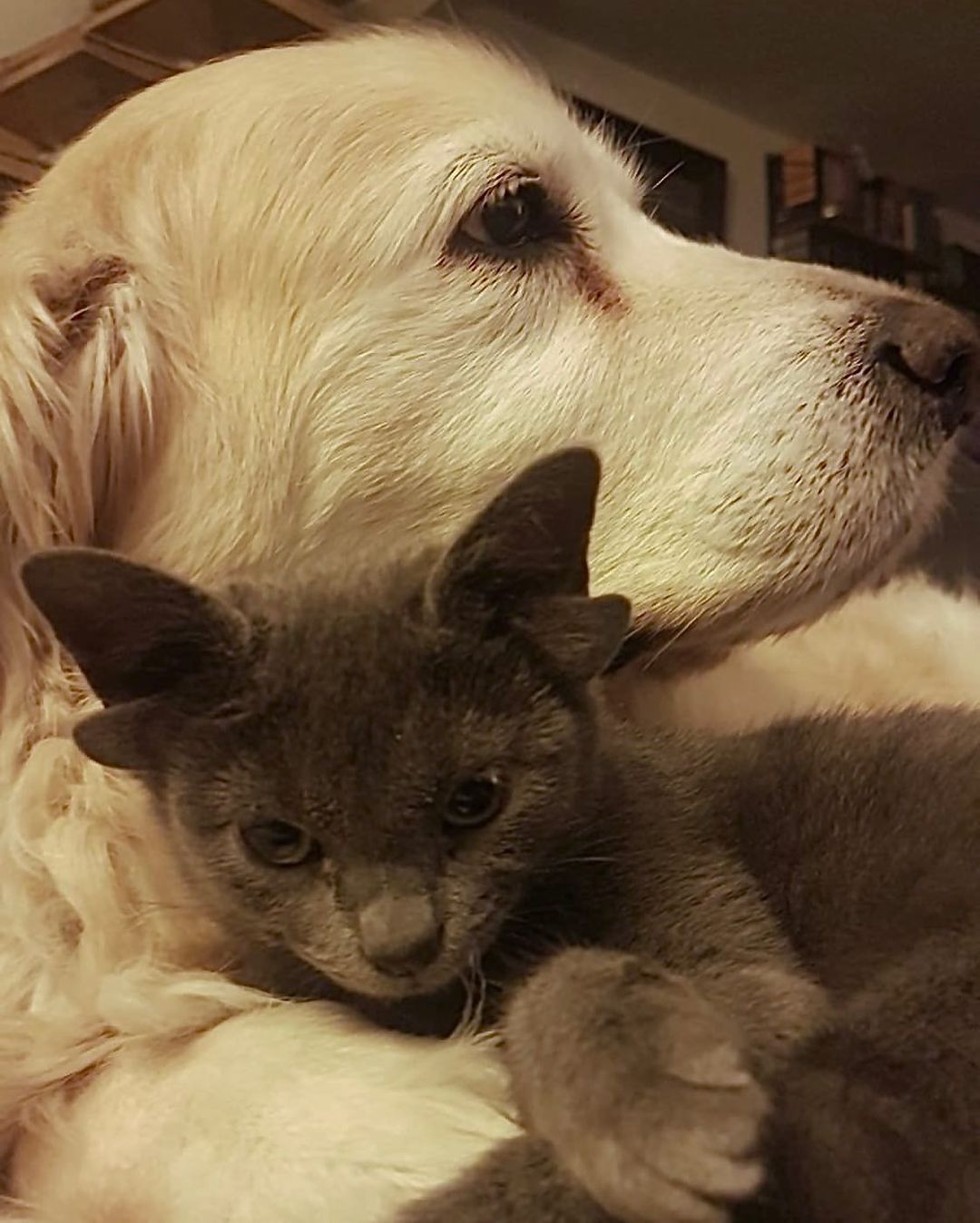Canis家中原本就已飼養一隻現年14歲的大白熊犬「Suzy」,對Midas來說可是大姊姊囉!原以為貓貓會超級調皮搗蛋,結果Midas跟Suzy感情不僅超和睦,每天都會互相取暖、睡覺,Midas有時候還會跑到Suzy身上踩踩、踏踏,並一邊發出呼嚕嚕的聲音,兩毛感情好得沒話說。