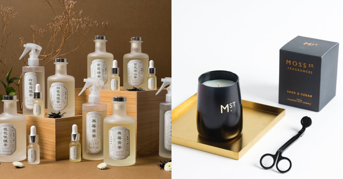 hoi!台灣茶香氛精油擴香220ml,售價599元,任選2件8折,法國進口高濃度複方香水精油使用化妝品等級的揮發液,採用符合歐盟法規IFRA標準製成,馬口鐵盒可收納茶葉或是重複使用。澳洲Moss極簡香氛蠟燭80g雪松鼠尾,售價550元,特價468元,澳洲手工生產,天然成分原物料,增進環境的氛圍。