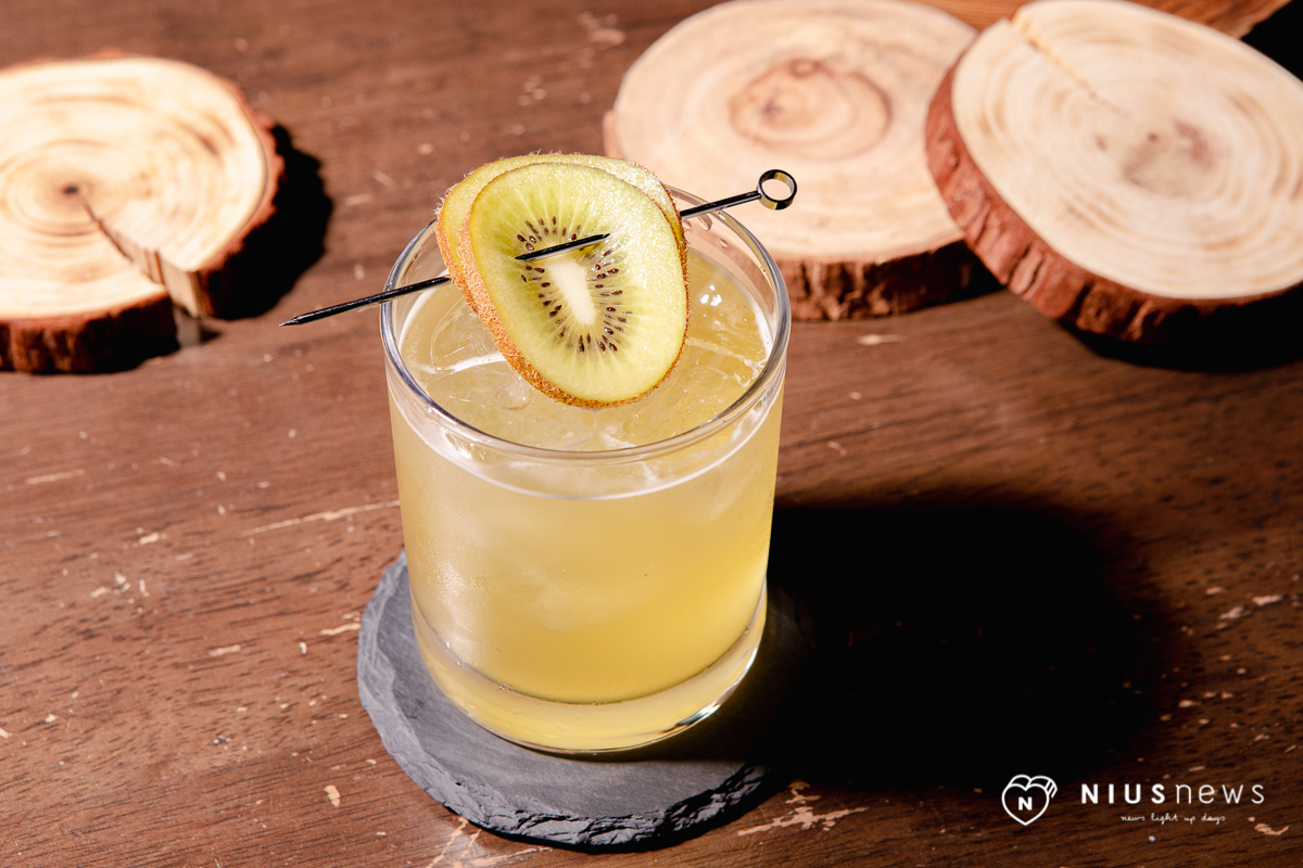 爽口蘭姆酒搭配青蘋果和清香綠茶,最後搭上奇異果清香,口感喝起來就像是那愛裝可憐的綠茶婊一樣,酸甜中帶點清新氣息,就是一個白蓮花、賤女人的味道(很氣XD),最後用奇異果畫龍點睛,放在杯子上的那一抹綠,像不像綠茶婊搶你男友時,戴在你頭上的那一頂綠帽呢~