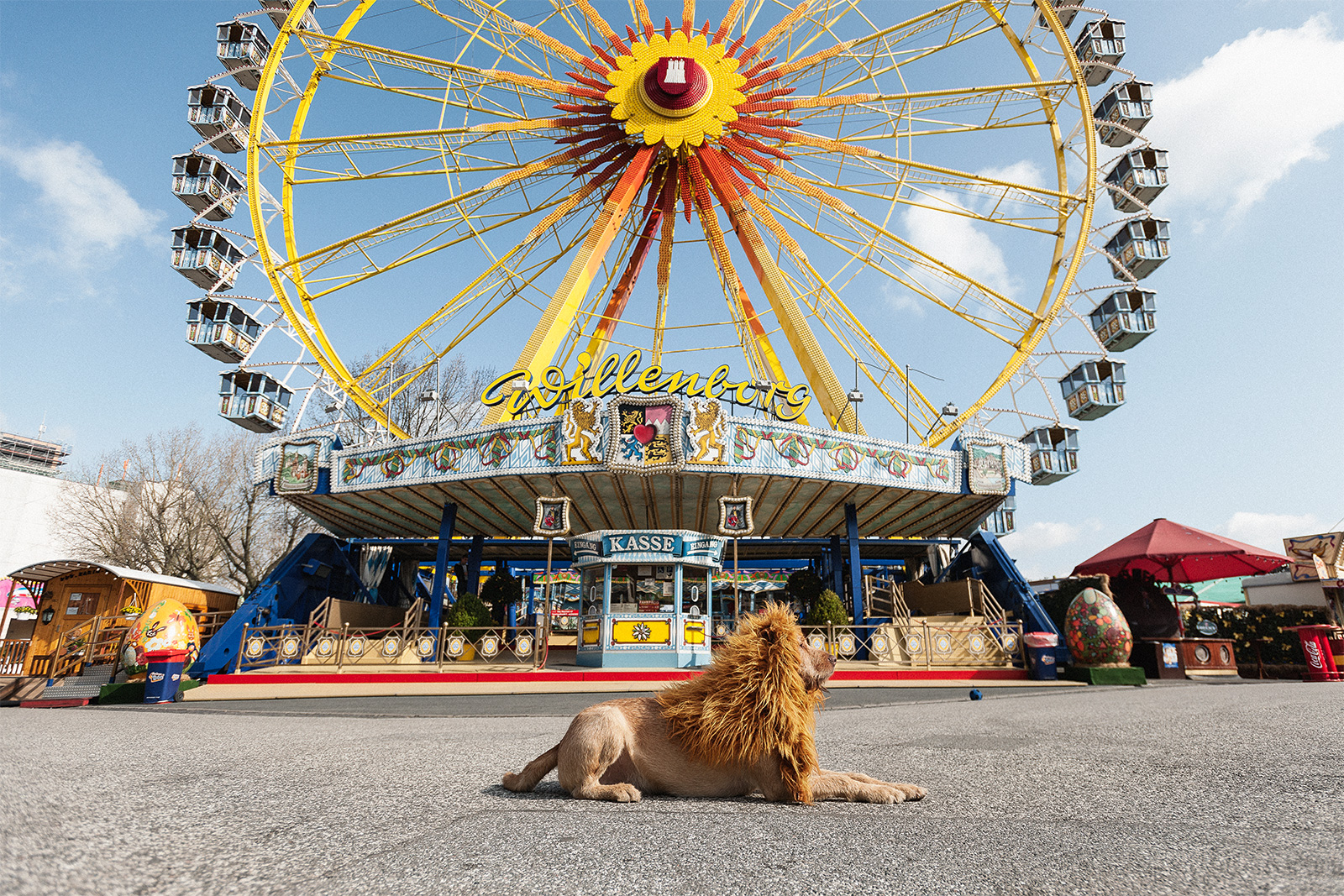 經過了一段時間的相處,Julia發現Leopold明亮的眼睛、金黃色的毛髮像極了草原上的獅子,因此特別照著Leopold的毛髮顏色做了一頂「假髮」,開始一系列「Grossstadttlowe」計畫,中文翻譯「大城市的獅子」。