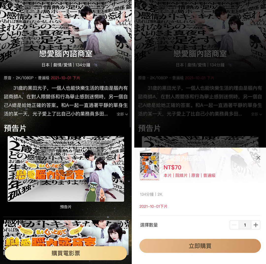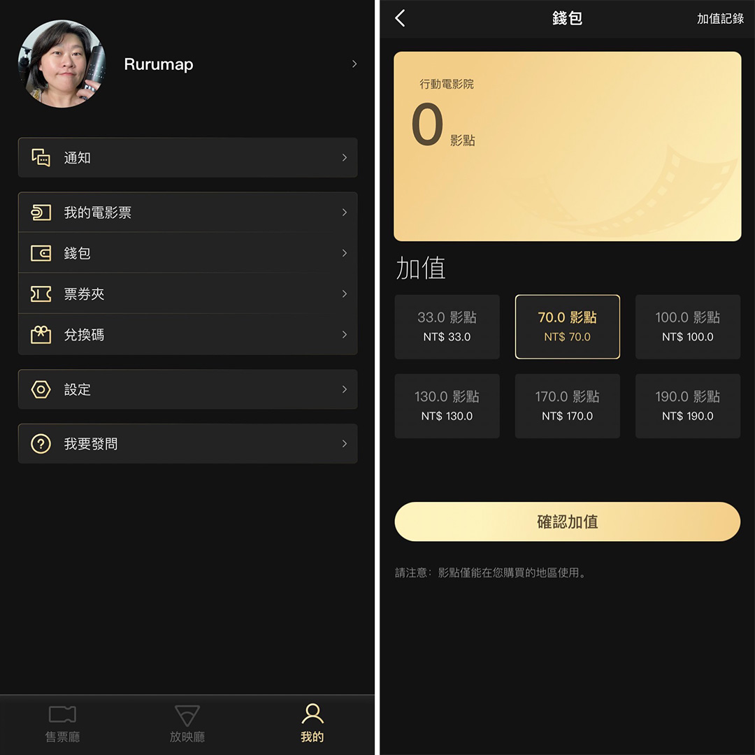 | ▲另外也可以在我的錢包中,儲值觀影點數,購買電影票。 |