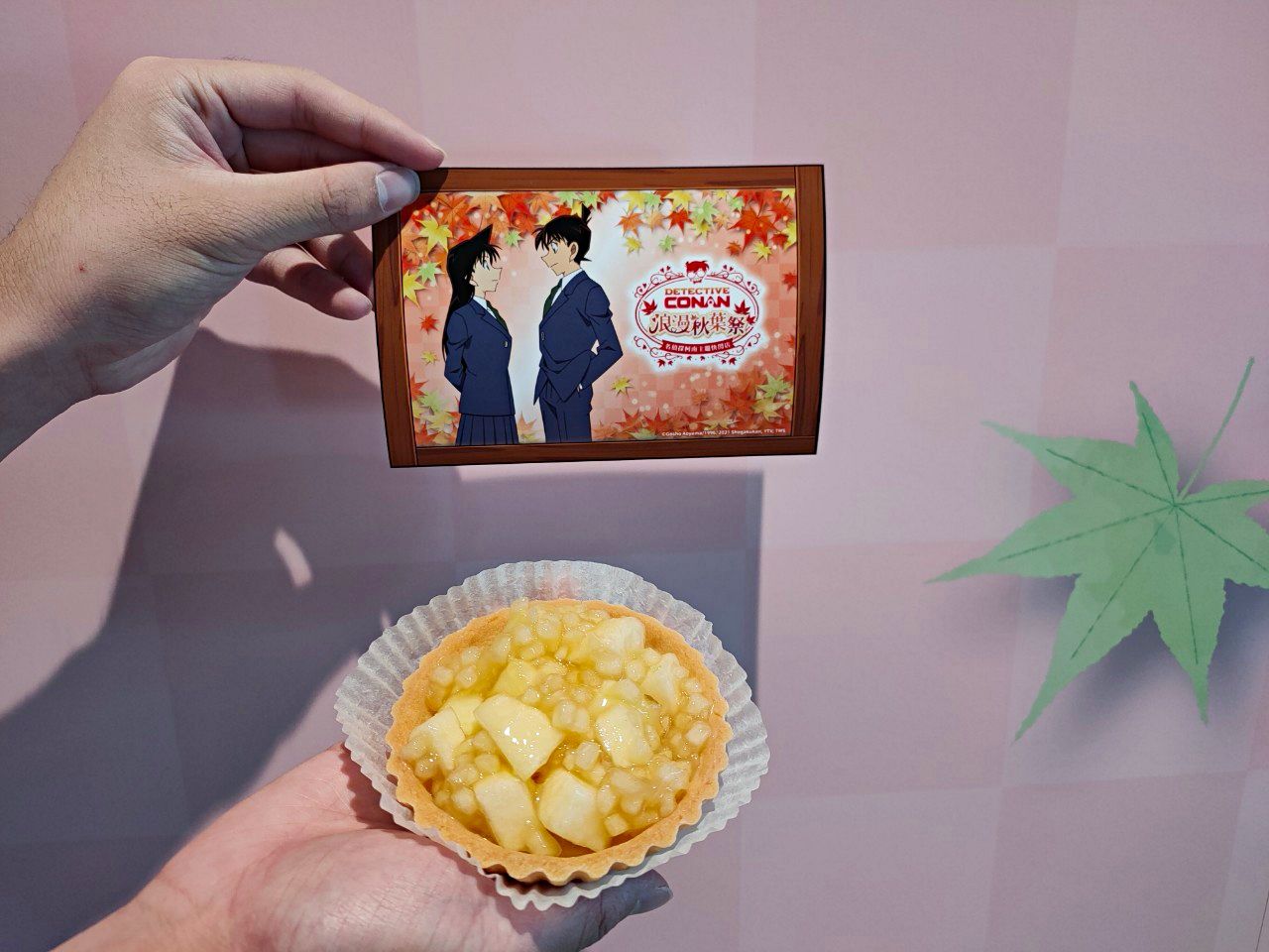 更特別規畫少年偵探團主題茶飲,不同的角色將搭配專屬配色,買飲料也會贈送隨機杯墊喔,每款都無法割捨讓人想一次收藏!不可錯過的還有新一和小蘭的蘋果派,象徵戀愛的酸甜口感,購買還可獲得兩人紀念寫真一張,妞妞千萬不能錯過!