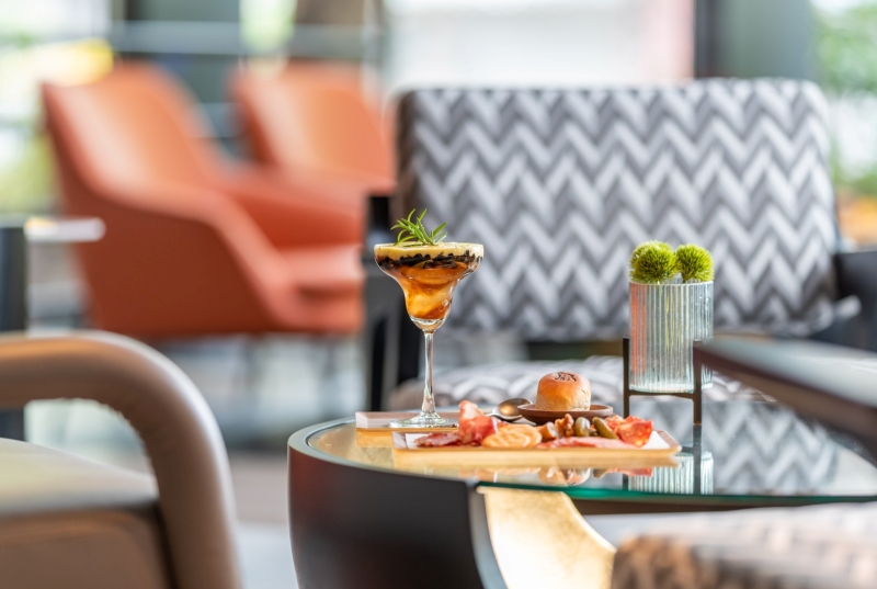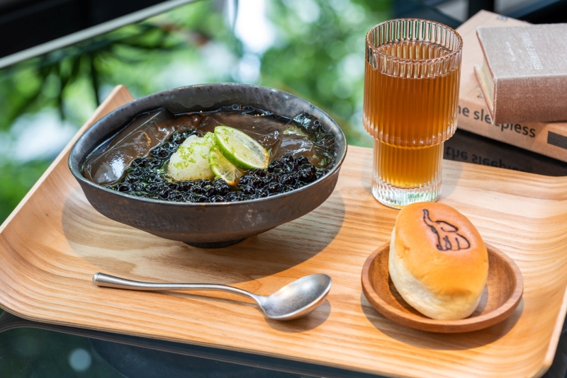 台北時代寓所一樓大廳設計摩登、挑高舒適,大片落地窗外是群樹圍繞,陽光透過樹葉灑落一片,座位區前的牆面則是互動藝術品「蝴蝶森林」,讓人猶如處身城市綠洲中,是許多往來住客特別喜愛在此會客商務、或放空休憩的原因。為提供貴賓們更多有趣且在地的餐飲選擇,台北時代寓所特別邀請台北象山腳下愛玉專門店《解解渴有限公司》進駐快閃,在炎炎夏日,讓文青小店手工製作的冰品和飲品成為您今年酷暑的透心涼補給!