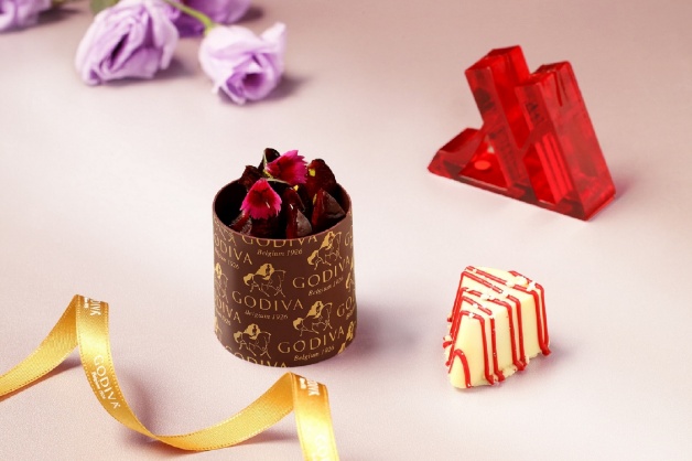 「海鹽荔枝生巧克力」以夏之戀限定「布丁造型焦糖海鹽白巧克力」為靈感,基底是GODIVA黑巧克力脆餅,以海鹽為GODIVA生巧克力佐味,用浪漫牛奶巧克力花朵和荔枝晶球點綴,濃郁迷人的香氣就好像一塊焦糖布丁,在口中令人回味!