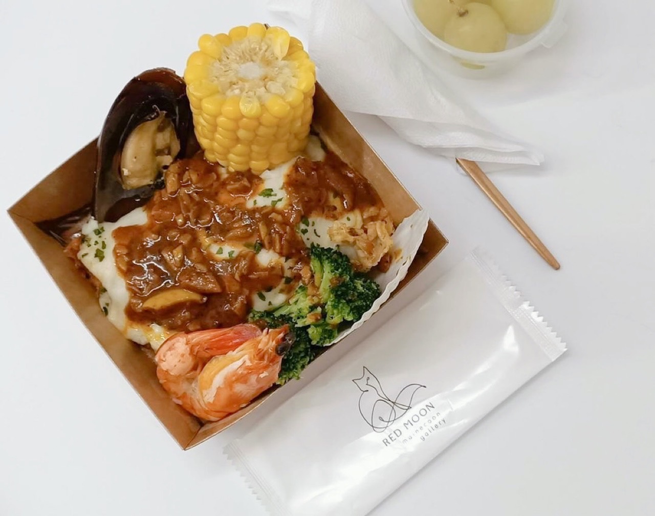 如果中午沒吃飽想來點鹹食的話可以點一份「手工蕃茄奶油牛肉千層麵」,層層麵皮夾著香氣四溢的番茄肉醬、奶油白醬&起司,旁邊點綴著去殼鮮蝦、扇貝&淡菜,吃飽還有飯後水果可以享用,真的讓人意猶未盡呢!(熱量也是陰魂不散XD)菜單上還有一區為「貓用品」,大家可以加購這些品項與貓互動呦~(肉泥以當天現場銷售狀況為主)