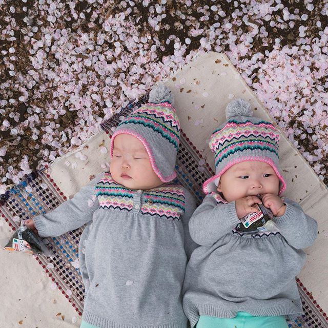 兩個小寶貝才剛滿九個月,爸爸媽媽就帶她們去東京賞櫻,也拍下了一系列相當日系的生活萌照。