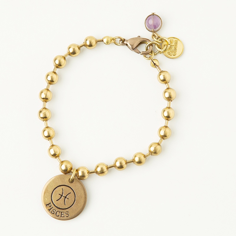 把星座符號細緻的刻畫在飾品上,展現不同星座的個人特質,雙魚座的代表石紫水晶也也是屬於內斂型的人緣之石,其實很適合雙魚座的特質,這樣的搭配讓手鍊更有守護意味,也是非常適合閨蜜之間展現友情的配件選擇!