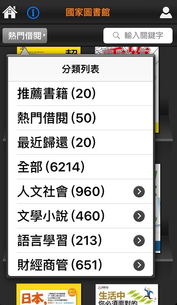 如果你在茫茫書海當中不知道要挑哪一本來看的話,可以參考App中的推薦書籍,或是根據使用者所做出來的熱門借閱,當然也可以按照人文、語言、財經等分類選擇。