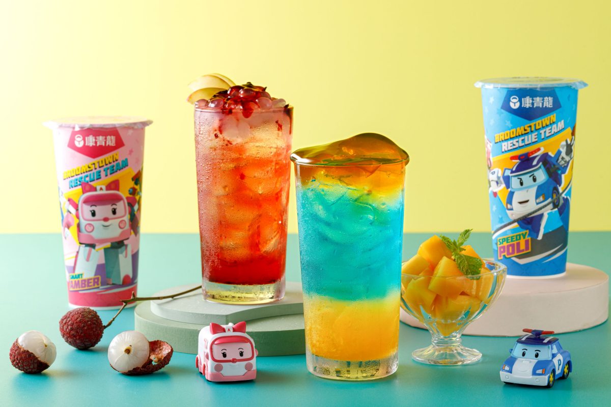 康青龍與兒童界偶像巨星「救援小英雄波力」聯名,以動畫主角為主題推出「炫藍波力」、「萌粉安寶」2款聯名飲品,夢幻的藍、粉色彩,視覺沁涼感十足,更有為小朋友特製的小小英雄杯,共有「蜜香鮮奶」、「蜜香桑葚」2款無咖啡因飲料,飲料杯身、封膜也都通通變成波力、安寶和隊員們的可愛模樣,大小朋友們快收集起來!