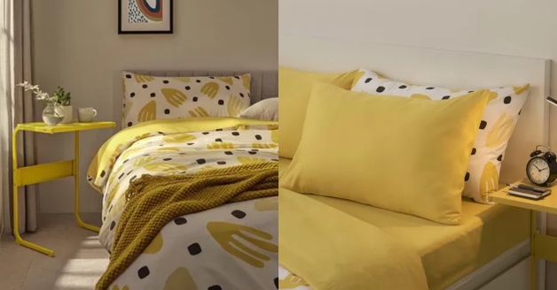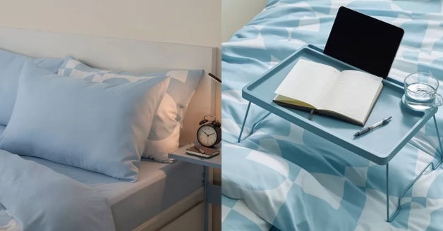 特別是在這次「BRUKSVARA系列」又主打「黃色」和「藍色」兩種顏色,各色系都有推出枕頭套、人體工學枕套、床上托盤、單人床包、床包、被套、邊桌、吊衣桿,喜歡的妞妞們完全可以打造自己的色系雅房啊!