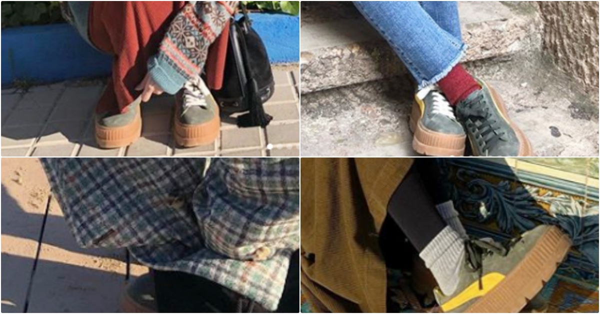 眼尖的網友就發現,這系列西班牙旅遊穿搭居然都穿同一雙鞋!?不禁讓人OS:「到底多愛,所以不願意換鞋啦?」這雙墨綠色麂皮鞋面、超厚的焦糖增高鞋底,應該很多人很眼熟吧(笑)!沒錯,網友們也瘋狂在NAVER、SNS發問,發現其實是2017年運動品牌PUMA與天后蕾哈娜的聯名款式「FENTY PUMA By Rihanna Cleated Creeper Suede」,重點是年代已經略久遠(笑),官網早就售完下架,讓大家崩潰太難買~(女神下次可以穿新款嗎XD)