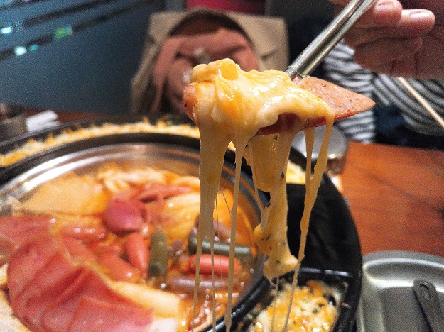 除了經典的韓式年糕鍋,今年兩餐更推出韓式部隊鍋,準備攻占各位迷妹們的味蕾,德國香腸、培根和火腿和其他蔬菜配料一起噗嚕噗嚕在醬汁裡滾煮,光看就食慾大開。