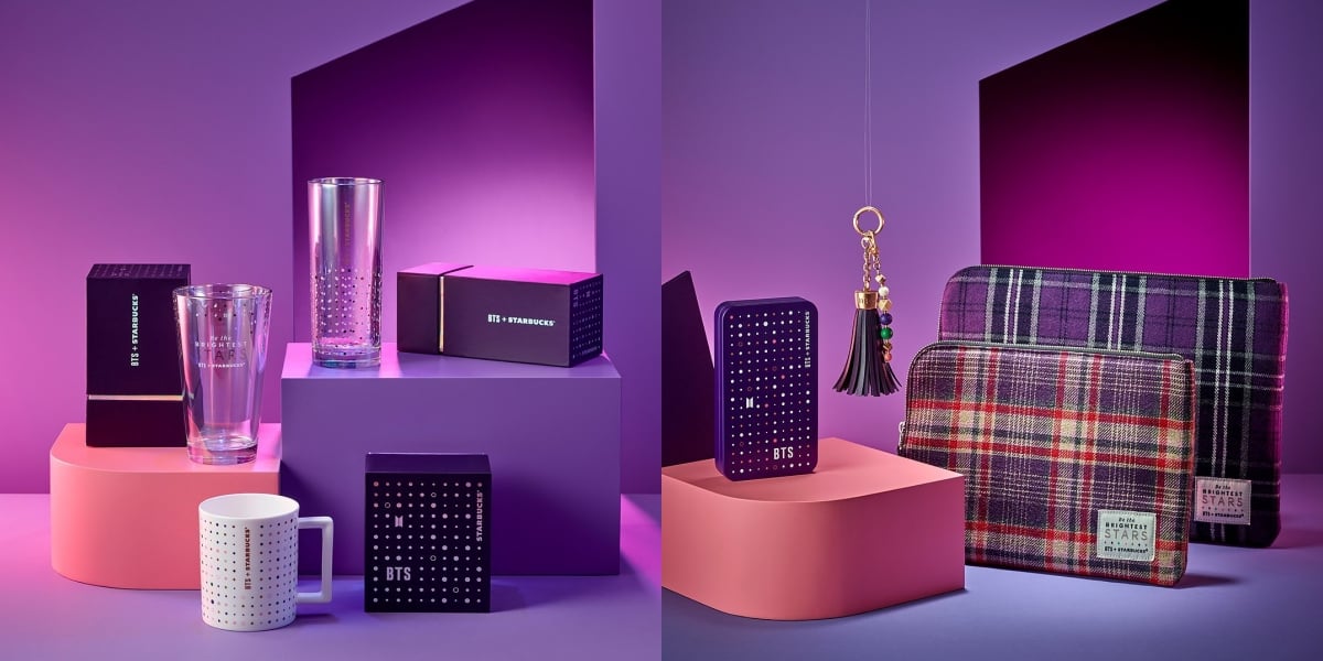BTS防彈少年團×韓國星巴克聯名活動期間一路從1月21日至2月6日,為期短短17天,總共有一款飲料、五種甜點蛋糕和六種週邊商品,甜點蛋糕的部分則有藍莓星星馬卡龍、紫莓起司蛋糕、紫星杯子蛋糕、紫星磅蛋糕和香草星星蛋糕等,蛋糕上面都會有「BTS LOGO」。