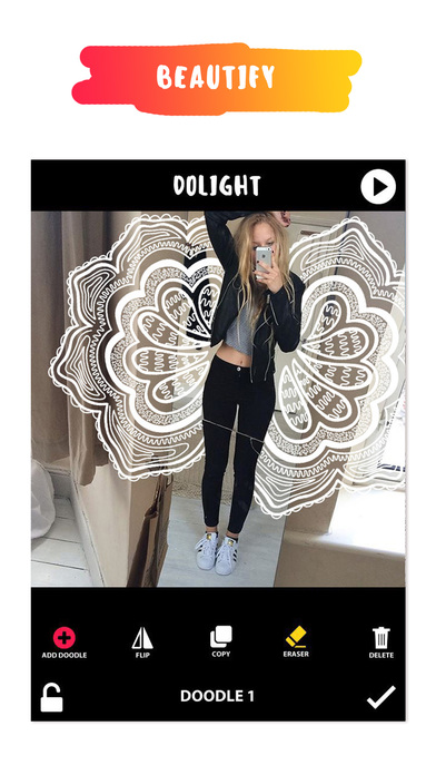 《Dolight》不但有各種編輯工具和調整功能,還有各種可愛的手繪插圖,讓你的照片看起來不只充滿了文青風,更有俏皮的生動感,如果要跟朋友一起曬美照的話,肯定不會輸的!