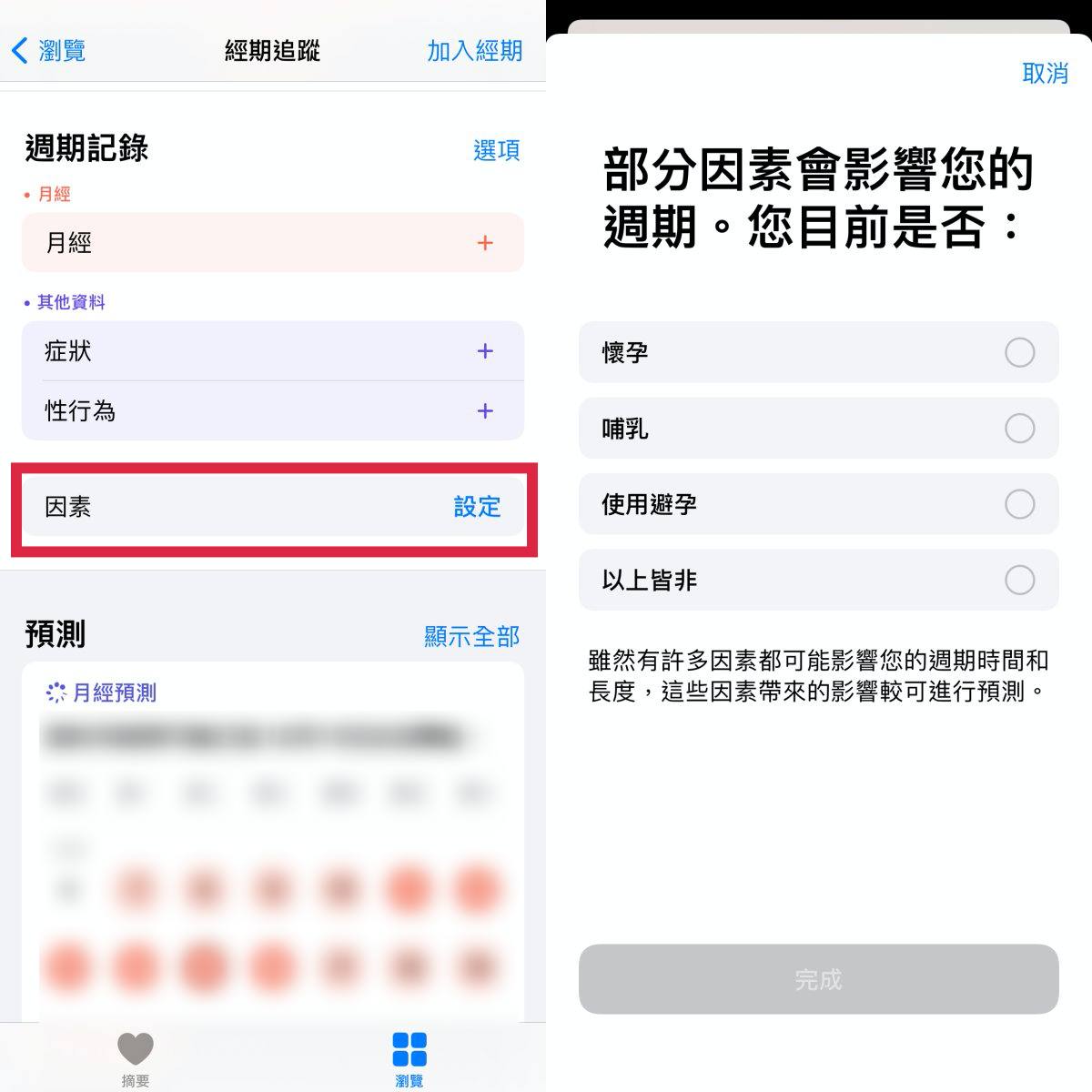 #健康App的「經期追蹤」加入「因素」