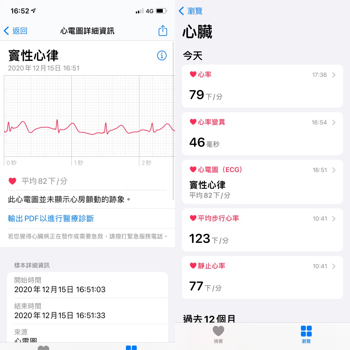 每次測量結果都會被收錄在App《健康》的「心臟」中,心電圖可輸出成PDF檔,提供給醫生進行醫療診斷。