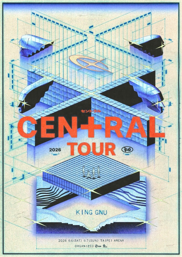 本次「King Gnu CEN+RAL Tour 2026」為樂團史上最大規模巡演,不光巡經日本國內15座城市,亞洲版圖更將擴及曼谷、香港、台北、上海及首爾。其中,最大亮點也非「360度四面舞台」莫屬,到時勢必能感受 King Gnu 更加純熟且震撼的視聽覺饗宴。