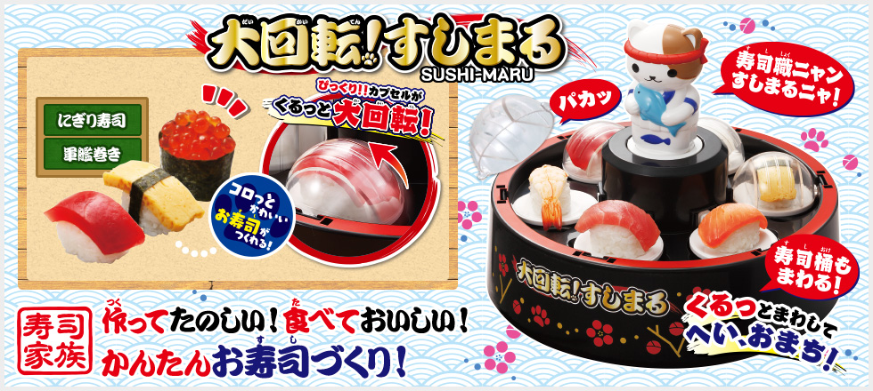 Source: キッチンマルシェ外伝特集ページ | メガトイ MEGATOY,大回転!すしまる|商品情報|メガトイ|メガハウスのおもちゃ情報サイト