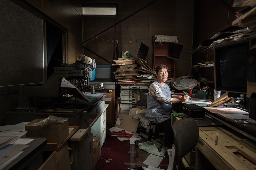 法國攝影師Carlos Ayesta和Guillaume Bression找回當初被迫遷徙的福島縣災民,和他們一齊前往當地的輻射管制區拍攝”Retracing Our Steps”系列照片,回去他們當時的職場或最常待的地方,記錄下那些曾經熟悉卻已經全然走味的日常景象。
