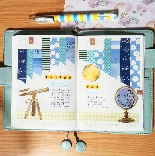 有時候紙膠帶上並不一定有很明確的動植物或物品圖案,你或許會擔心在使用上「圖文不符」,但這位部落客可沒在怕的,只要拼貼顏色相近的紙膠帶,要雲得雲、要雨得雨,就算是火星也大丈夫!