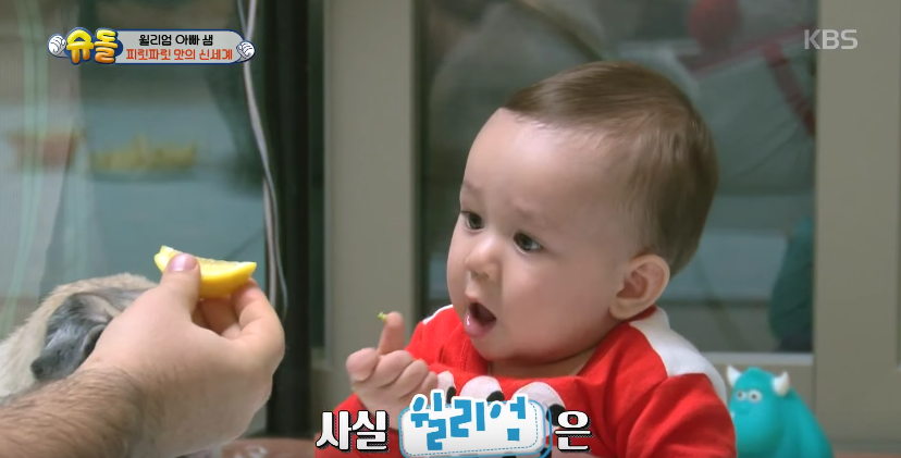 最後Sam爸爸拿出了檸檬!《我的超人爸爸》節目自古以來,沒有任何寶寶喜歡吃檸檬,每個Baby光碰到就會顫抖~究竟小威廉能不能接受呢?