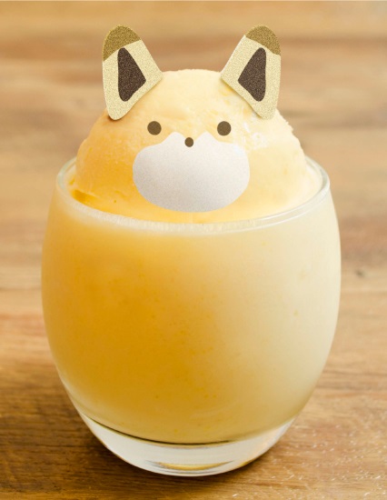 跟小狐狸一樣黃黃的綜合果汁,上面漂浮著小狐狸冰淇淋。