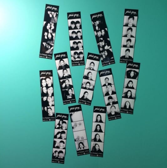 Photobooth就是傳統拍大頭照的機器,後來以這種四格大頭照的形式,成為一種在國外常常用於婚禮紀念的復古拍照方式。拍照有白底(黑白)跟藍底(彩色)兩種選擇,就像是拍證件照一樣。