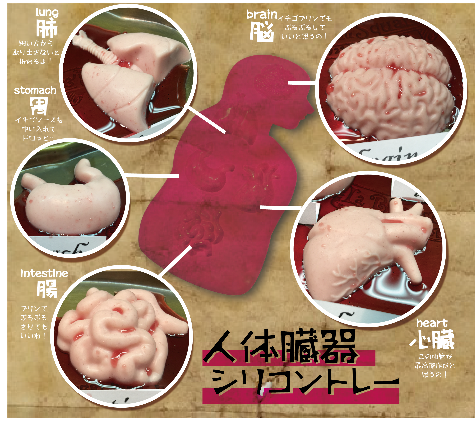 在今年情人節前夕,日本的ヴィレッジヴァンガード(Village Vanguard)推出了一款內臟矽膠模型!只要將草莓口味的淡粉色巧克力融化後倒入模型中,等到巧克力冷藏定形後,再加上草莓果醬或其他紅色系的莓果醬汁當作血漿點綴一下,就可以做出既逼真又美味的內臟巧克力唷!