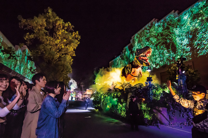 這囊括「哈利波特」、「小小兵」、「侏儸紀世界」、「變形金剛」四大電影主題的花車遊行,整場遊行長達將近一小時,360度的環繞立體感、全長約600m的光雕投影設計,每次看都是既震撼又感動。