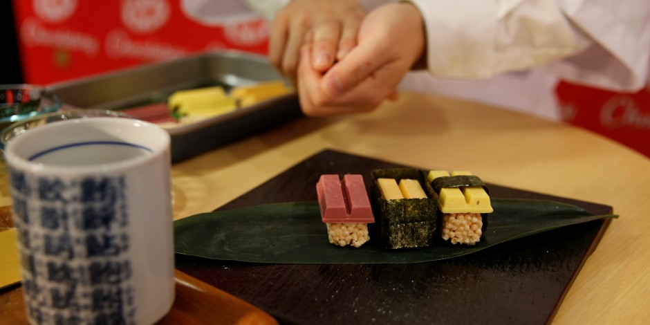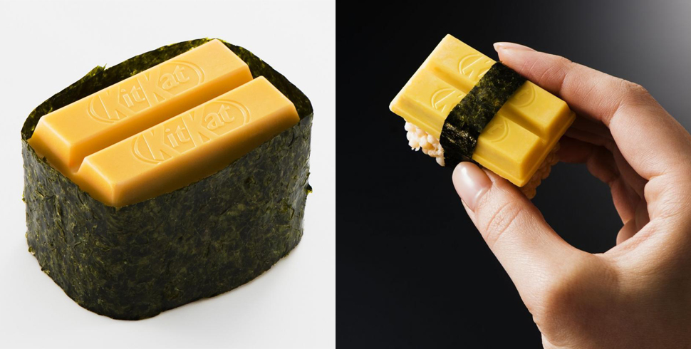 還記得去年愚人節的時候,KitKat有張海報在網路上瘋傳嗎?上面有許多看起來像是握壽司的巧克力,據說是為了搭配清酒口味KitKat所設計的「KitKat Suishi」。海報出現模仿鮭魚、鮪魚、玉子燒口味的巧克力握壽司,立刻引起一陣話題,想說這個愚人節的玩笑,實在可愛到讓人好想要!
